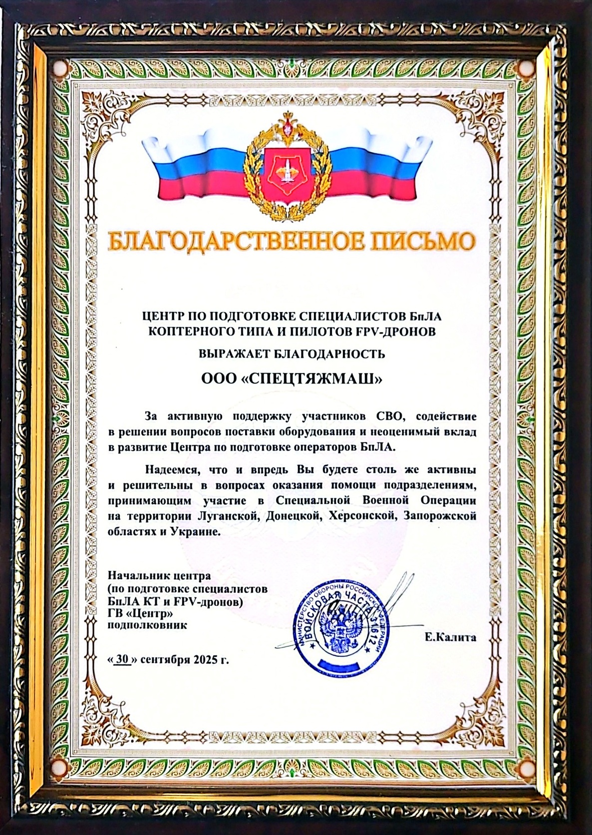 Благодарственное письмо